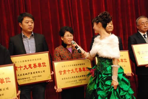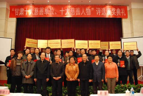 由甘肅省慈善總會(huì)和甘肅日?qǐng)?bào)社聯(lián)合主辦、每日甘肅網(wǎng)獨(dú)家承辦的2010年甘肅省十大“慈善單位”、“慈善人物”頒獎(jiǎng)典禮于2010年12月28日在蘭州舉行。經(jīng)過激烈角逐,甘肅國芳工貿(mào)集團(tuán)股份有限公司榮幸地被評(píng)為“甘肅十大慈善單位”之一。