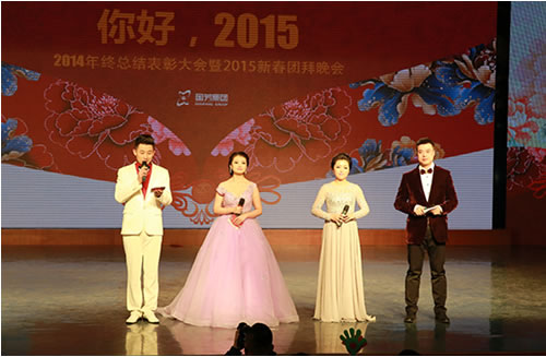 2015年2月9日晚,在蘭州37中(蘭州女子專業(yè)中等?茖W(xué)校)5樓藝術(shù)廳內(nèi),國芳集團(tuán)“你好,2015”2014年終總結(jié)表彰大會暨2015年新年盛典溫馨開演。恰逢國芳集團(tuán)成立十五周年,晚會現(xiàn)場充滿了溫馨、喜慶和感動。晚會延用了去年的大型LED顯示屏、多組VCR、微信平臺等廣受好評的元素,并創(chuàng)新的融入了中華名族傳統(tǒng)的禮儀文化,漢唐古典舞的壯觀優(yōu)美,員工孩子們《弟子規(guī)》的可愛表演,都在為晚會添加了精彩度的同時(shí),將傳承禮儀所需要的高尚美德這一思想深入的傳達(dá)到每一位員工的心中。員工們精心準(zhǔn)備的節(jié)目一個(gè)比一個(gè)精彩,極具藝術(shù)表現(xiàn)力和觀賞性,董事長也被熱烈的氣氛所感染,親自上臺演唱了兩首歌曲,把晚會推向了高潮。最后,國芳集團(tuán)年終晚會在祥和熱烈的氣氛中落下了帷幕。讓我們共同期待來年的精彩!