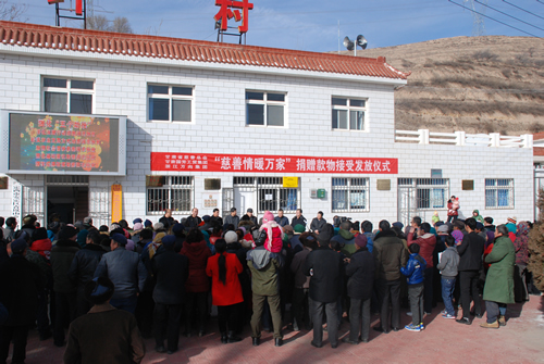 2016年1月21日由甘肅省慈善總會(huì)、甘肅國(guó)芳工貿(mào)集團(tuán)聯(lián)合開展的“慈善情暖萬(wàn)家”捐贈(zèng)物資接受發(fā)放儀式在青嵐山鄉(xiāng)大坪村隆重舉行。省慈善總會(huì)常務(wù)副會(huì)長(zhǎng)張瑞堂同志、副會(huì)長(zhǎng)張忠健同志,甘肅國(guó)芳工貿(mào)集團(tuán)副總經(jīng)理白海源先生,定西市政府副市長(zhǎng)李斌同志及市區(qū)民政局、青嵐山鄉(xiāng)政府主要負(fù)責(zé)同志參加了儀式。省慈善總會(huì)聯(lián)合國(guó)芳工貿(mào)集團(tuán)籌措價(jià)值120萬(wàn)元的衣物5100多件,資助青嵐山鄉(xiāng)3000多戶困難群眾,幫助他們解決穿衣方面的困難。
