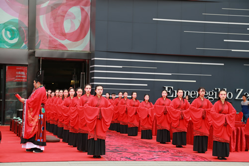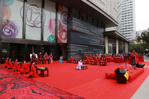 國(guó)芳集團(tuán)十七周年司慶大型文化活動(dòng)——漢式迎賓禮于9月3日上午8時(shí)30分,在國(guó)芳百貨正西門正式上演。除集團(tuán)各分子公司管理人員外,還邀請(qǐng)了與國(guó)芳集團(tuán)合作多年的數(shù)十名供應(yīng)商代表一同出席此活動(dòng)。