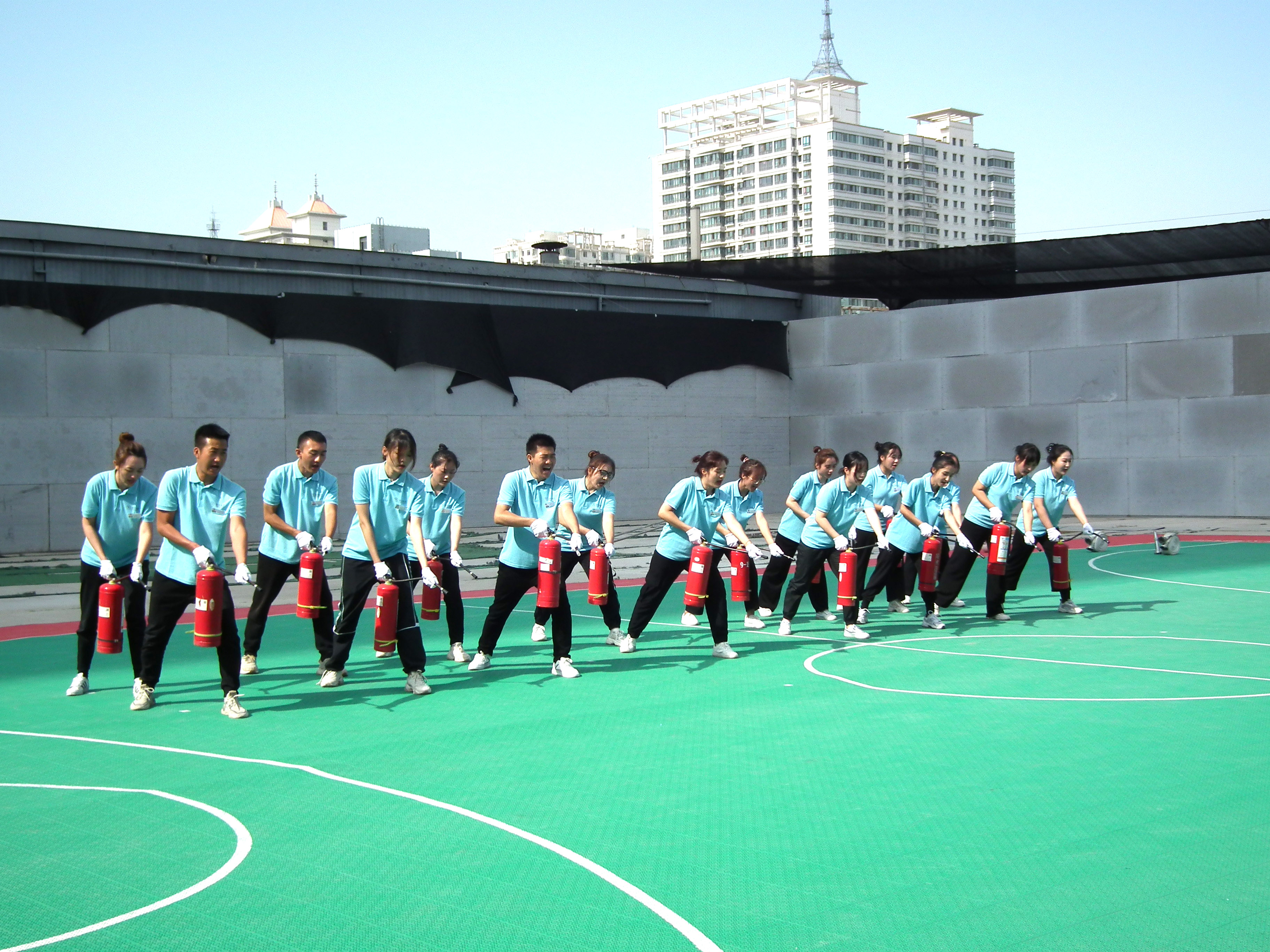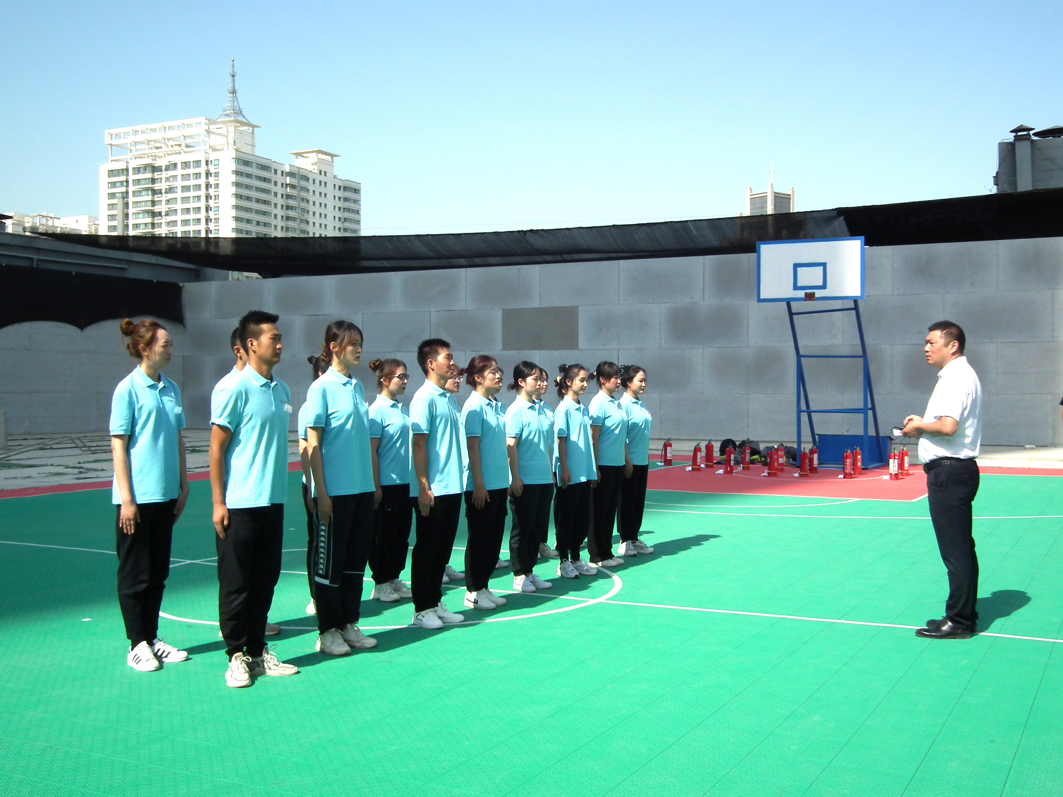 此次軍事匯報(bào)表演在常規(guī)隊(duì)列練習(xí)項(xiàng)目的基礎(chǔ)上融合消防器械操作,借助軍事化訓(xùn)練培養(yǎng)面對(duì)及克服困難的能力,弘揚(yáng)百折不撓的鐵血精神,全面提升個(gè)人綜合素質(zhì),同時(shí)從管理培訓(xùn)生的職業(yè)生涯起點(diǎn)強(qiáng)化消防安全防范意識(shí),提高火災(zāi)防范及自我保護(hù)能力。日后在工作崗位上作為管理人員能夠起到帶頭作用,切實(shí)履行消防安全工作的各項(xiàng)職責(zé),認(rèn)真落實(shí)各項(xiàng)消防安全制度和措施。