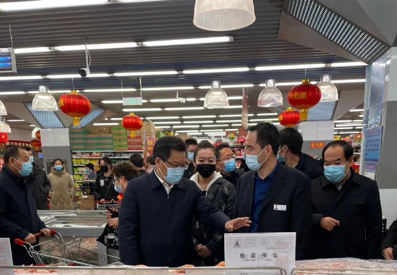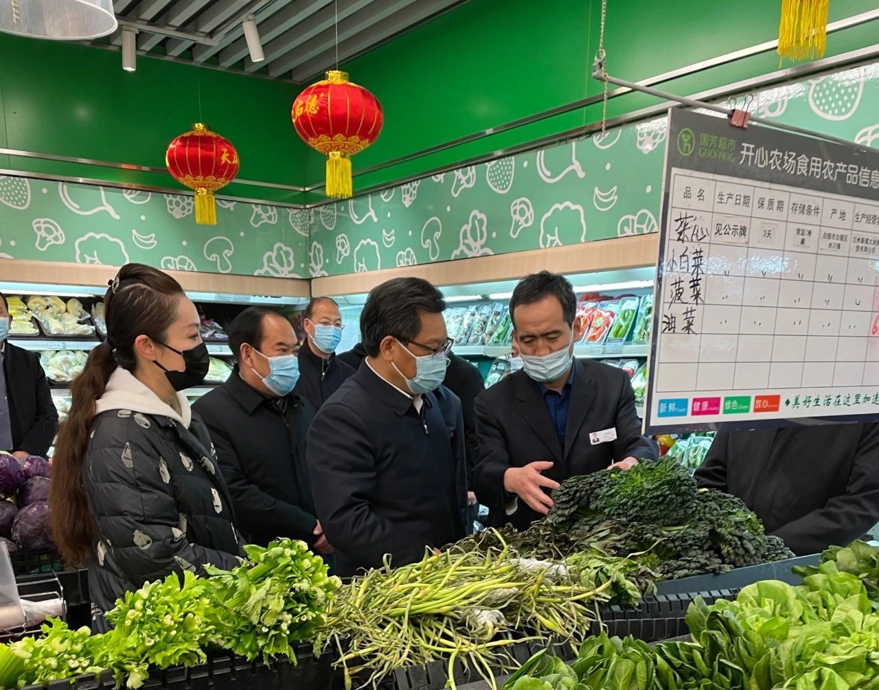 2月10日,甘肅省委副書記、省長(zhǎng)任振鶴,甘肅省委常委、蘭州市市委書記李榮燦,甘肅省政府秘書長(zhǎng)李志勛,甘肅省市場(chǎng)監(jiān)管管理局局長(zhǎng)王忠習(xí),蘭州市市長(zhǎng)張偉文等省市領(lǐng)導(dǎo)一行調(diào)研指導(dǎo)春節(jié)保障供應(yīng)及慰問(wèn)超市一線員工。